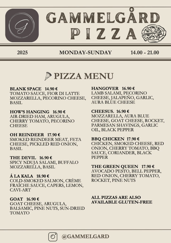 GammelgĂ„rd Pizzeria, offering Neapolitan-style pizza, was opened in May 2021, after renovating the old bakery building and bringing the wonderful Italian Valoriani pizza oven inside the pizzeria. The oven is heated to 450 degrees and the dough is allowed to rest for more than 2 days, so that the flavors properly rise to the surface. Today we can proudly offer Nauvo’s best pizza. In the former bakery building of the manor, the Archipelago-Neapolitan-style pizzeria offers Italian gelato and other Italian dishes in addition to gourmet pizzas.